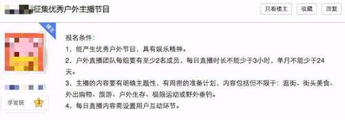 图注:某直播平台列出的招募户外主播要求